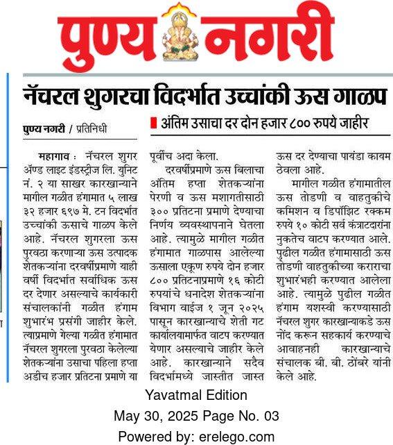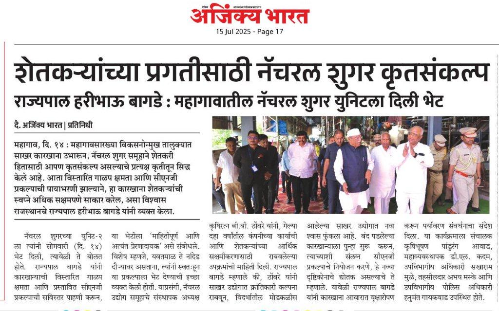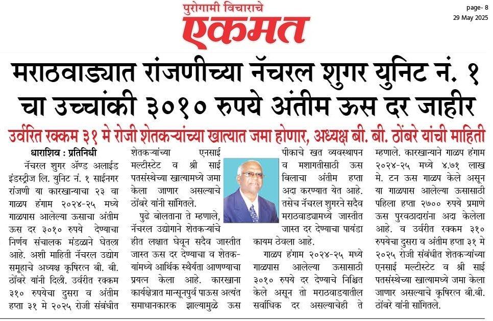 Home About History COMPANY PROFILE ACHIEVEMENT OVER VIEW Management Team CMD PROFILE CMD RESUME CUM BIO-DATA POLICY CSR REPORT CSR PHOTO PRODUCTION PERFORMANCE DIVISIONS PRODUCTS Dairy INVESTORS Environment Department GALLARY MEDIA Recruitments Contact ISO Certificate SUGAR DIVISION UNIT-I DAIRY DIVISION FERRO ALLOYS DIVISION DISTILLERY DIVISION NSAIL BIO ENERGY CBG DIVISION Government GR Gopinath Munde Sanugruh Yojana Mahiti Gopinath Munde Sanugrah Yojana PRESS-NEWES Natural sugar NEWES माननीय पंतप्रधान यांना पत्र. Covid-19 महामारी मुळे देशभर सुरू केलेल्या टाळेबंदी मुळे उद्भवलेल्या अडचणी व त्यावरील संभाव्य संभाव्य उपाय योजना. Natural sugar NEWES APPOINTMENT